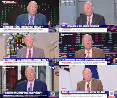 Après 60 ans de bons et loyaux services médiatiques, on aurait pu croire qu’Alain Duhamel allait enfin passer la main, comme il l’avait annoncé et comme sa femme l’avait exigé. Las… alors qu’il était théoriquement retraité depuis 2 mois déjà, il eut droit à une interview en pleine page dans le journal vespéral de référence (Le Monde, 7 sept. 2025). Mieux – ou pire – l’AFP (4 juil. 2025) nous informait au lendemain de sa retraite supposée que « dès la rentrée fin août, l’oncle de Benjamin Duhamel sera à l’antenne de la matinale de RTL tous les lundis à 09h10 pour commenter de grands thèmes d’actualité. Sur BFMTV, où il avait jusqu’à présent une émission quotidienne, il devrait intervenir le vendredi en fin d’après-midi ». Et les secousses politiques du moment ne sont pas de nature à nous rassurer puisque l’invité permanent des plateaux affirmait il y a quelques jours, un brin flagorneur, que « s’il se passe des choses importantes et qu’on me demande mon avis, surtout si c’est quelqu’un qui interroge bien… je vous dirai oui ». Tout récemment encore, il a élargi sa palette en intervenant dans l’émission « Quotidien » de Yann Barthès et semble donc plus que jamais parti pour rester. Laissons à France Duhamel le mot de la fin : « Ah oui, il a du mal à décrocher, c’est sûr… mais enfin il faudra que ça se termine, hein, vous êtes bien d’accord ? »