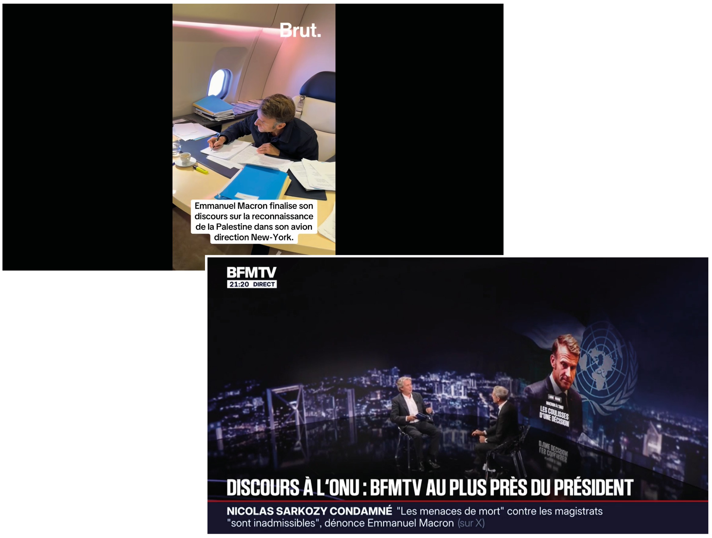 D’un côté, le média « Brut », récemment racheté, accompagne le président de la République dans son avion privé, direction New-York, et le met en scène « finalis[ant] son discours sur la reconnaissance de la Palestine ». De l’autre, les équipes de BFM-TV livrent un documentaire « embedded » – « Macron à l’ONU. Les coulisses d’une décision » – incarné par le journaliste politique Mathieu Coache, qui « a pu se glisser dans la délégation française ». Ce qui méritait, convenons-en, une promotion en grande pompe – option « journalisme d’investigation » – à l’antenne :