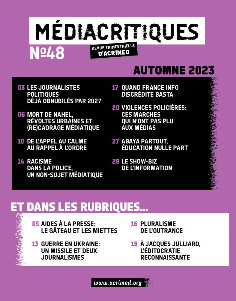 Le Médiacritiques n°48 sortira de l’imprimerie le 26 octobre. À commander dès maintenant sur notre site ou à retrouver bientôt en librairie. Et surtout, abonnez-vous !